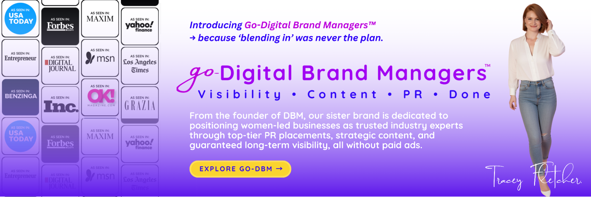 At the heart of Go-DBM™ is Tracey’s Premium PR Service, the fast track to authority for women ready to be recognized on a global stage. Features in top-tier outlets like Forbes, Entrepreneur, Business Insider, and Yahoo Finance shift perception overnight.